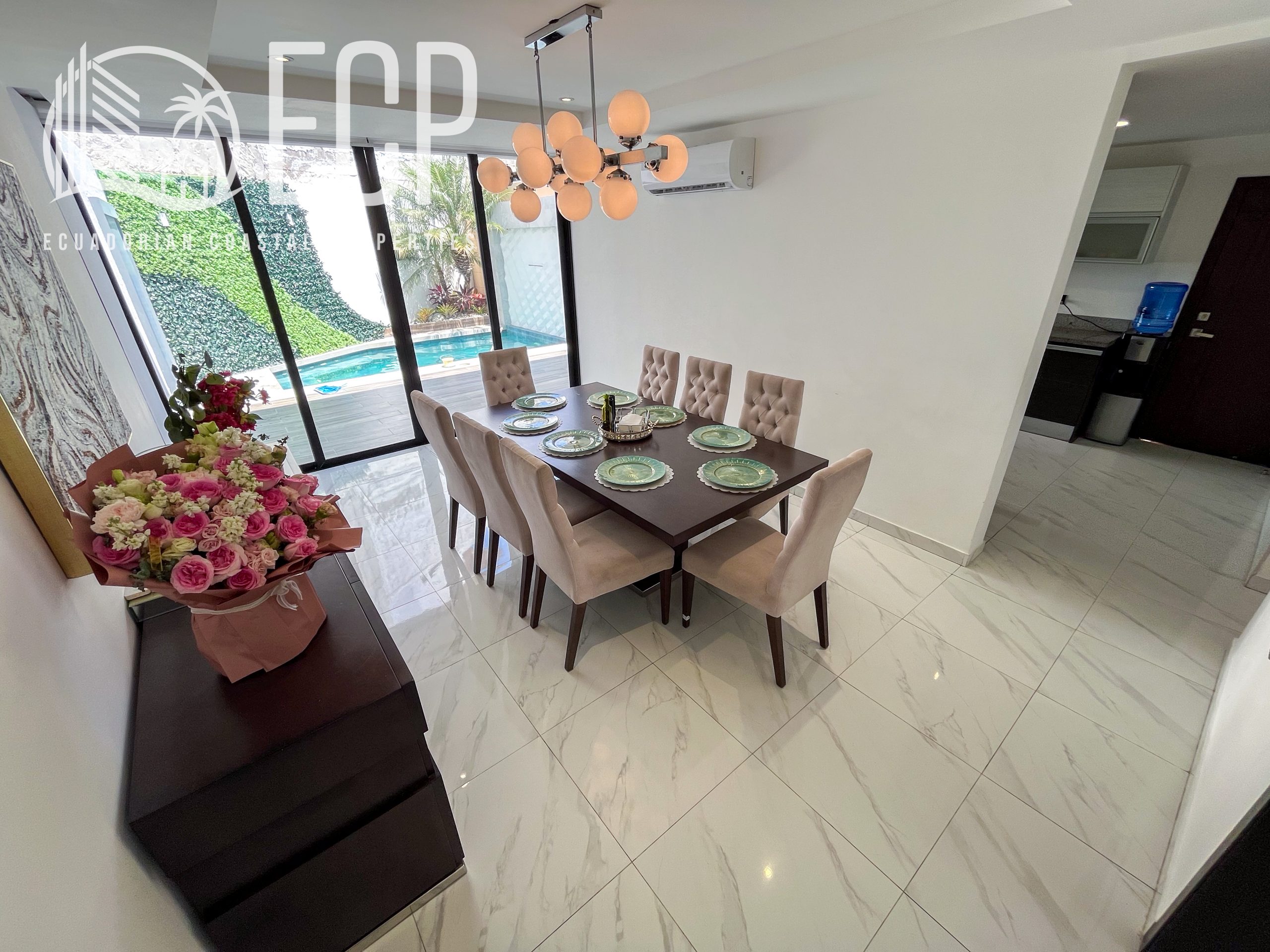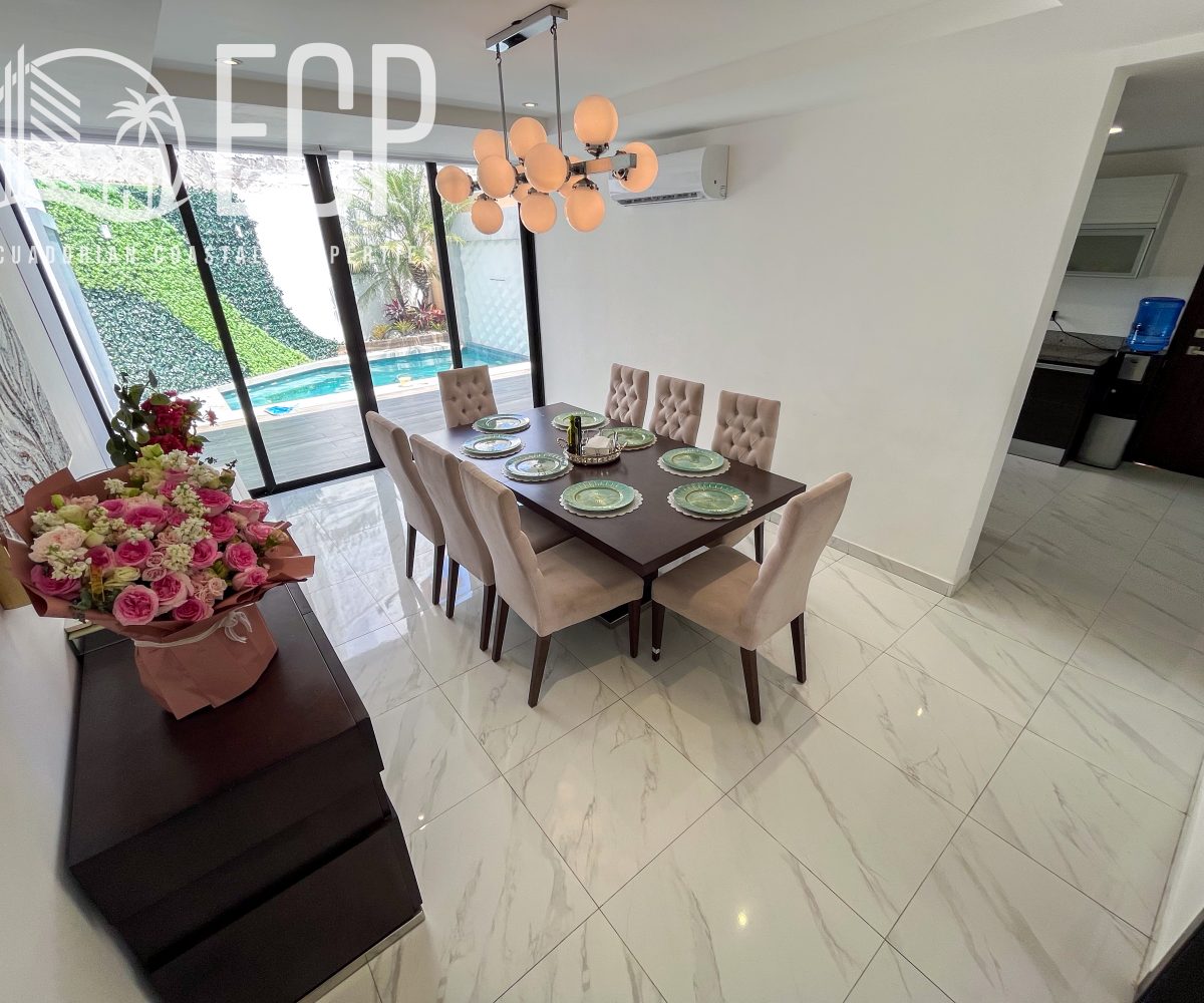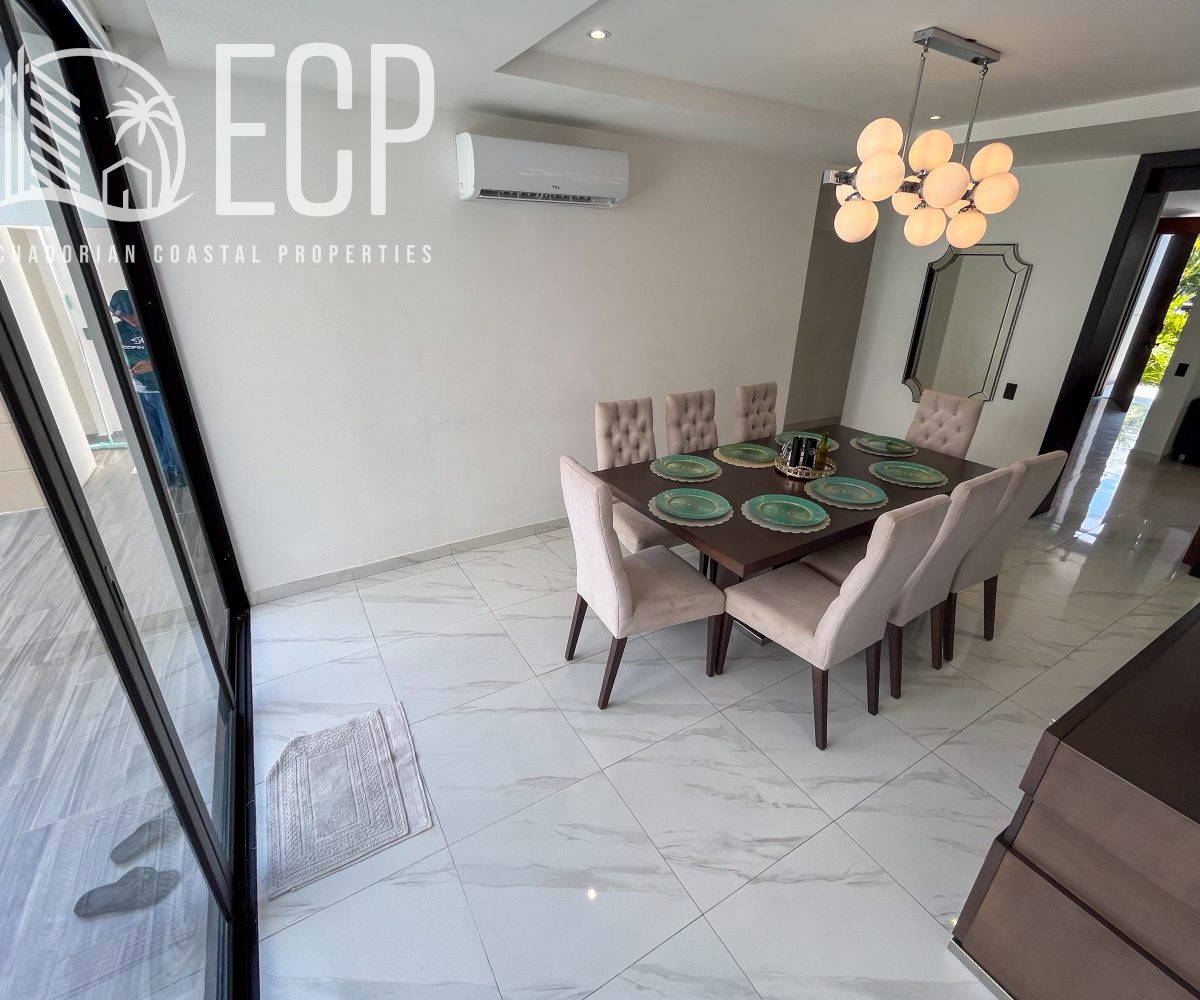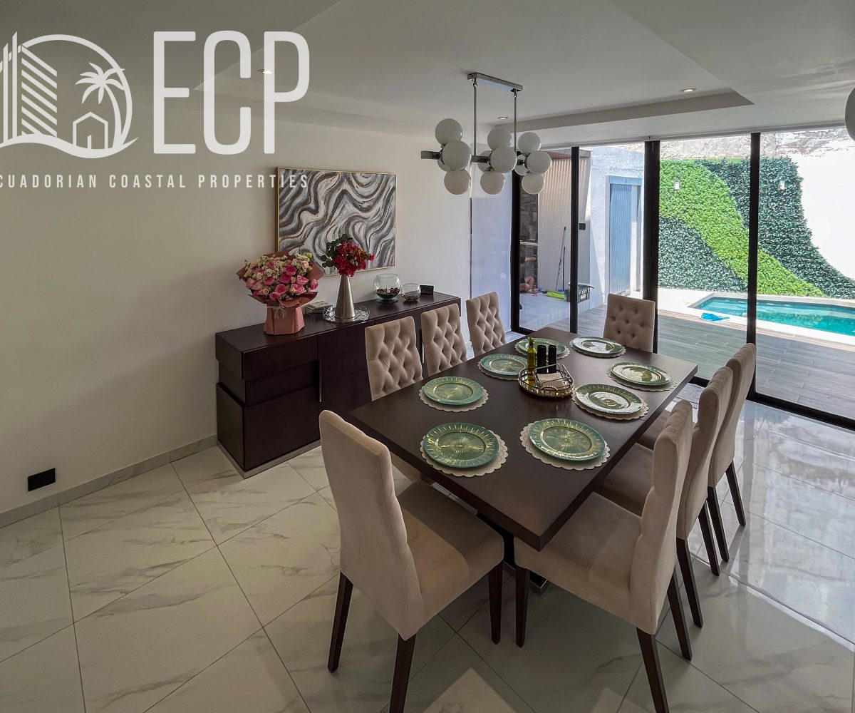 Lot size: 544.99 m² (5,866 sq ft)Construction: 451.38 m² (4,859 sq ft)Frontage: 16 m | Depth: 34 m Located in Urbanización Cantabria, one of Samborondón’s most sought-after communities, this new construction home offers a thoughtful combination of design, comfort, and functionality. Built with high-quality materials and attention to detail, the property delivers a layout that […]